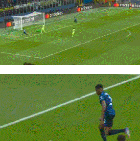 上半场第21分钟,国米前场右侧出球被断,随后巴萨球员出球被迪马尔科反断,接着迪马尔科送出销魂直塞,邓弗里斯反越位成功,杀入禁区右侧,将球无私横敲禁区左侧,劳塔罗跟进在门前近距离迎球推射空门得手帮助国米取得领先。
