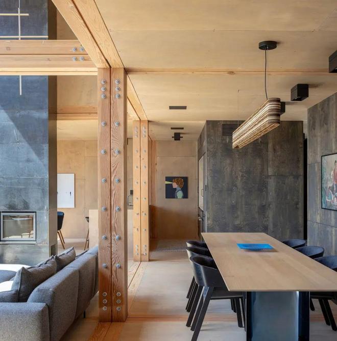 整个住宅的建筑材料均为木材,包括包层、屏幕与细节部分,突显了生态建筑的理念。选用木材作为主要建材,既减少了对环境的负面影响,又为住宅内部营造了温暖而触感丰富的居住氛围。设计强调低影响和负碳的理念,充分考虑了建筑对环境的影响,确保项目在可持续发展方面的领导地位。